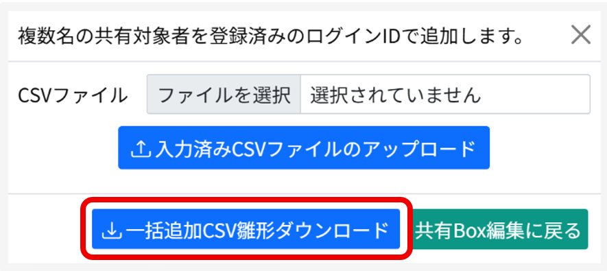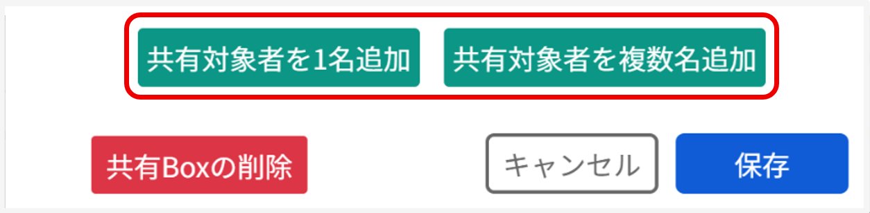 「共有Box編集」にある『共有対象者を1名追加』または『共有対象者を複数名追加』を選択します。
