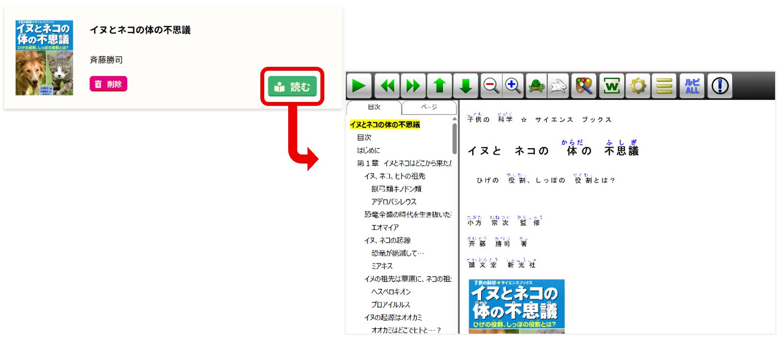 読みたい図書の『読む』ボタンをクリックすると、ChattyBooksが起動します。