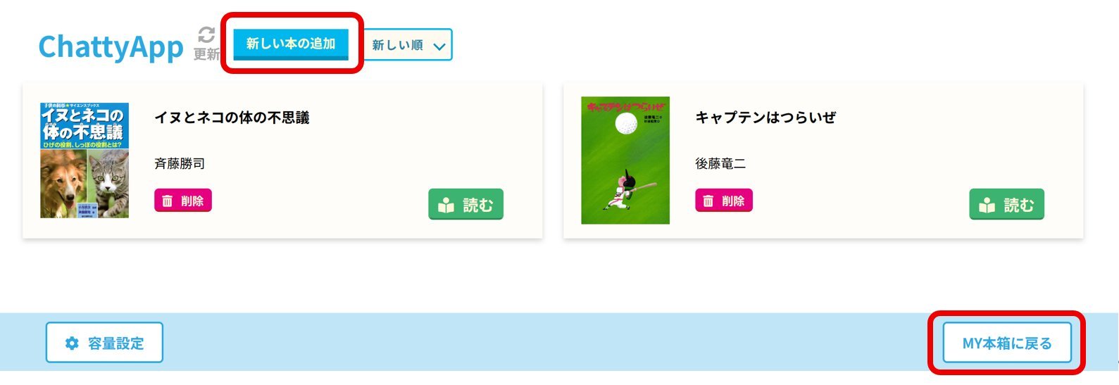 ※ MY本箱に戻る場合は、『新しい本の追加』か『MY本箱に戻る』をクリックしてください。