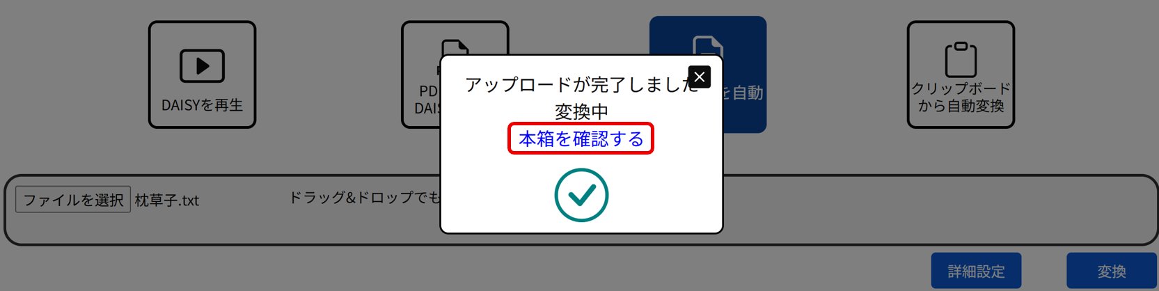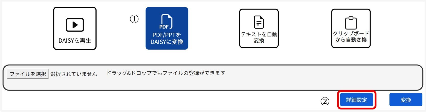 ※ 『詳細設定』については、「PDF/PPTをDAISYに変換」をご覧ください。